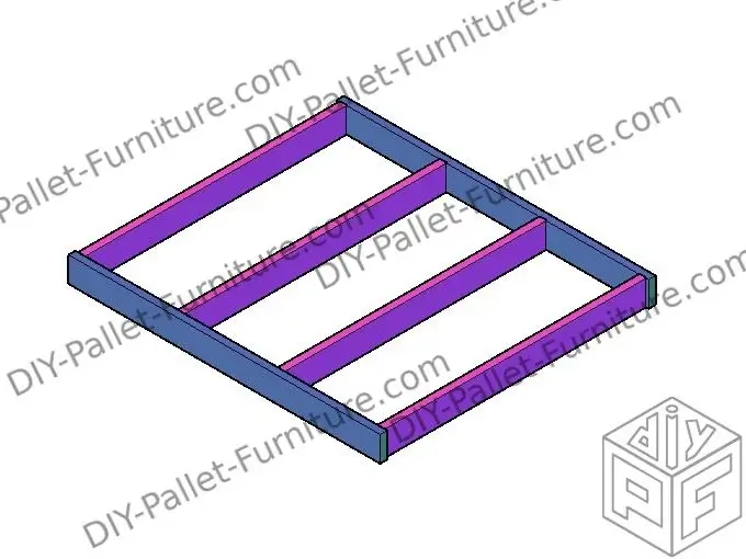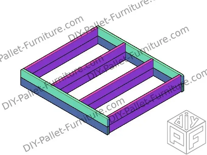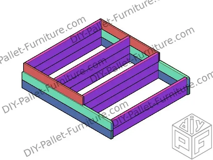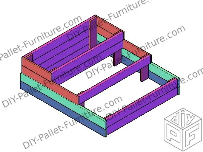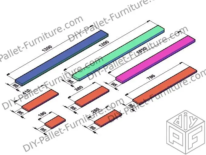 Here you have a view of the pallet we are using for this furniture along with an exploded view of the pallet itself. That way you can locate each one of the parts used for the model. Note that some parts might not be used for this specific model.