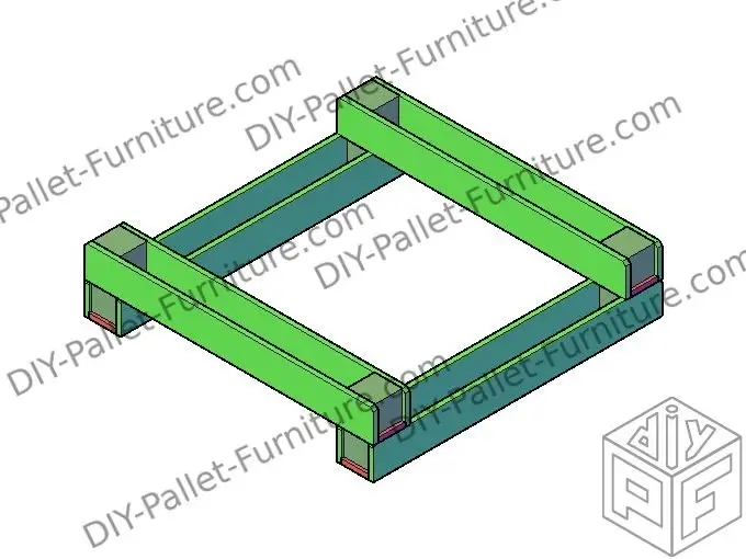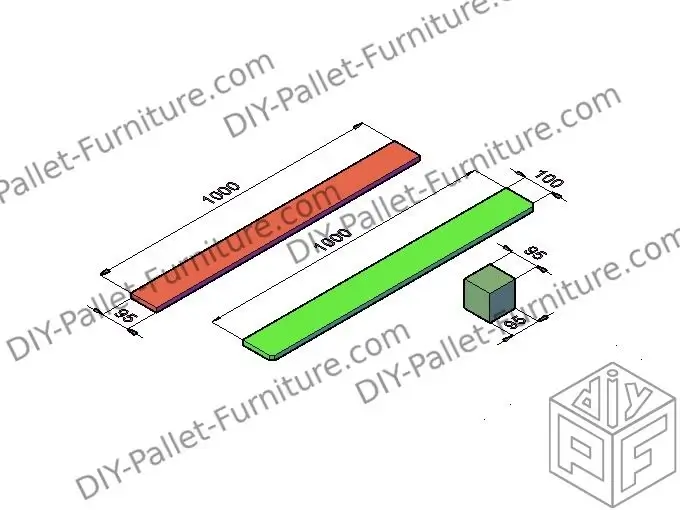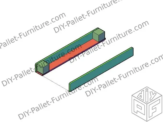 Here you have a view of the pallet we are using for this furniture along with an exploded view of the pallet itself. That way you can locate each one of the parts used for the model. Note that some parts might not be used for this specific model.